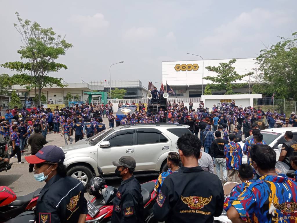 Aksi damai 7 Aliansi Ormas di depan Pt. TOPY PALINGDA Manufacturing Indonesia Kawasan Industri Suryacipta Karawang